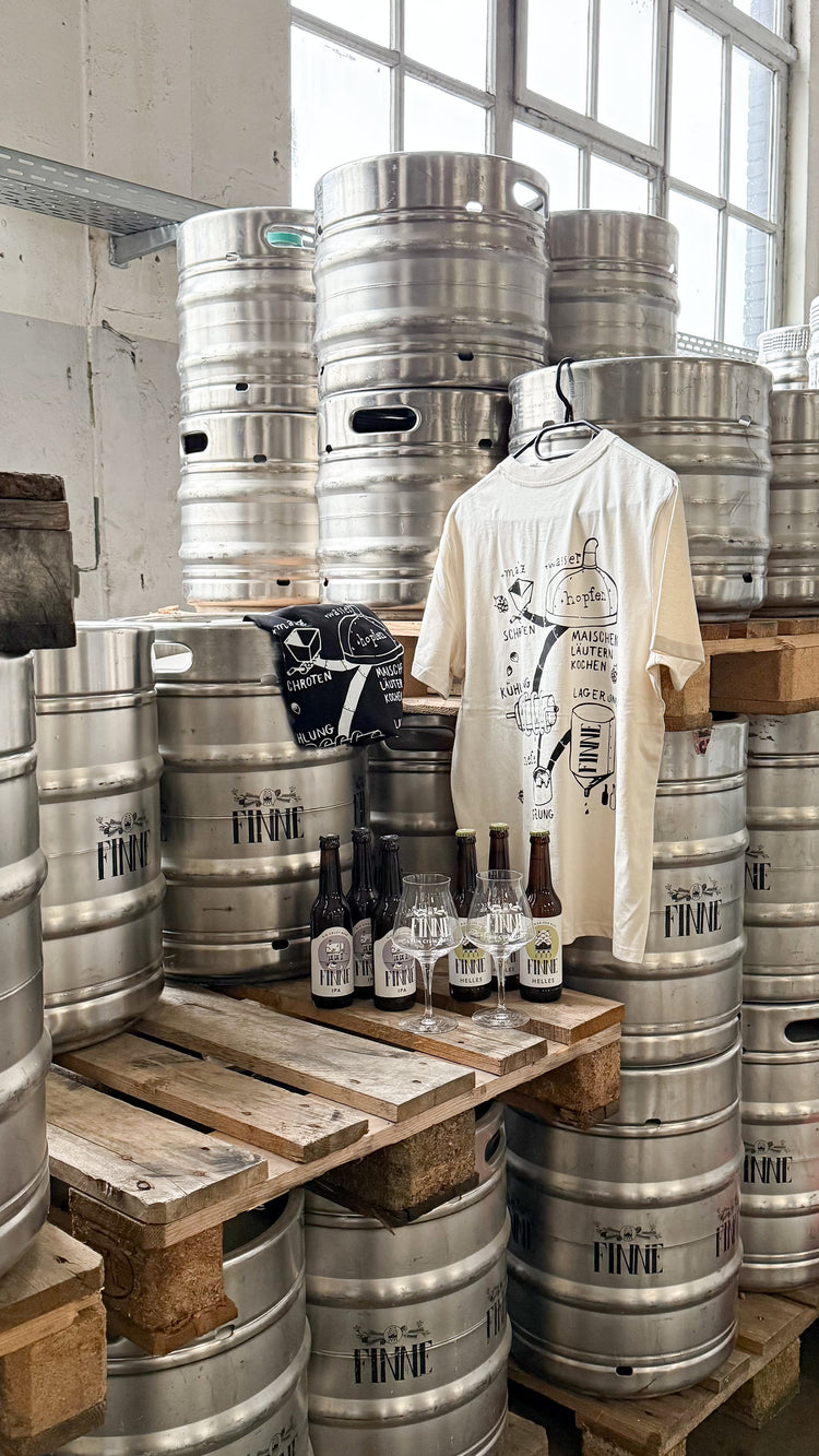 Dieses Shirt ist eine Hommage an das Handwerk des Brauens und die Freude am Genuss. Mehr als nur ein Kleidungsstück, erzählt es die Geschichte von Finne, unserer Brauerei und unserer Leidenschaft für gutes Bier.
