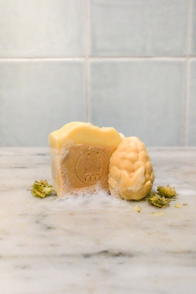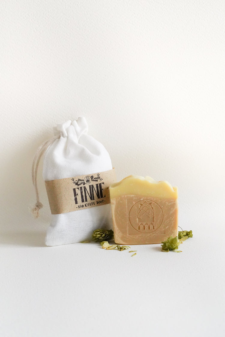 Pflegende Hand -, Haar - und Körperseife, hergestellt mit Finne Scottish Ale. Ohne künstliche Duft- und Farbstoffe.