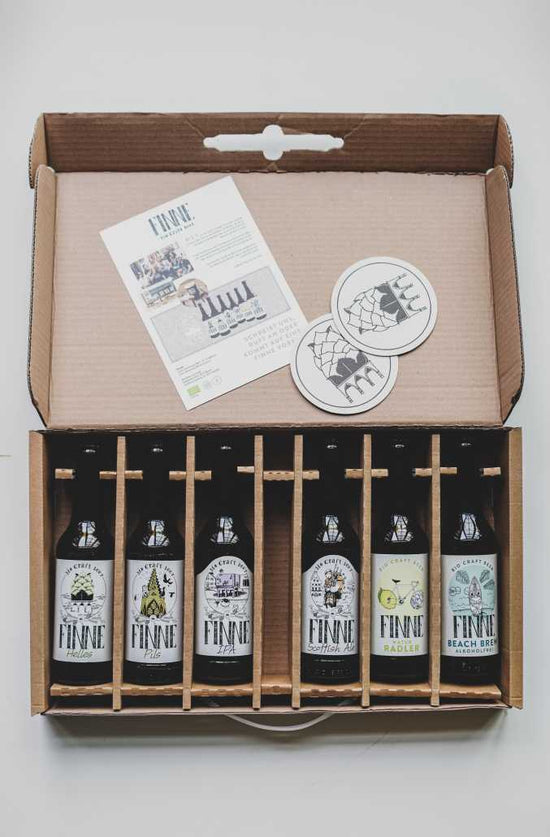Ihr bekommt im Vorfeld Euer Bierpaket nach Hause zugesendet, gerne auch mit unseren Finne Sensorik-Gläsern.